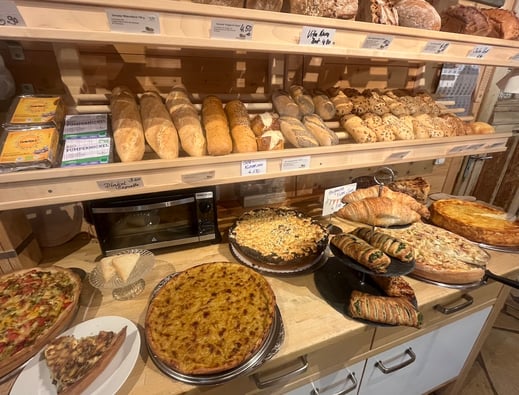 Von verschiedenen Bio-Bäckern aus der Region erhalten wir Brote und Backwaren. Vom Bäcker Gschwill bekommen wir dienstags reines Vollkornbrot, die Bio-Bäckerei Grotzinger versorgt uns mit Vollkornprodukten wie Semmeln, Brezn und Broten und alle 14 Tage gibt es Vollkorn- und Mischbrote von der Hofpfisterei.