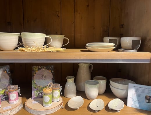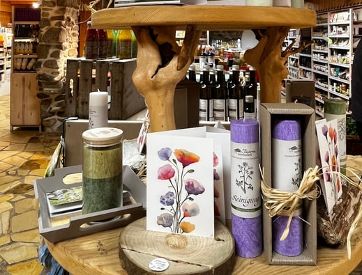 Schönes und Nützliches gibt es von kleinen Manufakturen und kreativen Nachbarn aus der Umgebung. Ob Räucherkerzen, handbemalte Karten, Bilder, Kräuter- und Kirschkernkissen oder schönes Porzellan – bei uns findet ihr einzigartige und liebevoll hergestellte Geschenkartikel.