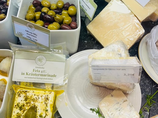 An unserer Käsetheke gibt es eine vielfältige Auswahl an Feinem von Kuh, Ziege und Schaf: ob würzig, mild, cremig oder lang gereift – bei uns werdet ihr sicher fündig. Dazu gibt es offene Antipasti von Il cesto. Darunter Oliven, Artischocken und getrocknete Tomaten.